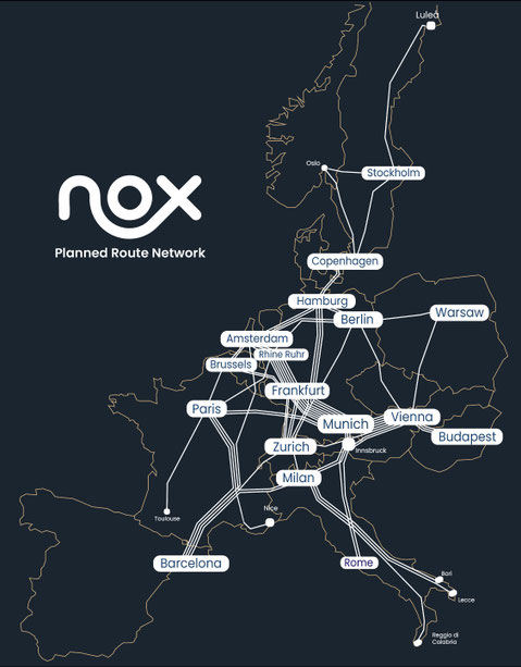 Nox wird ab 2027 über Nacht fahrende Züge anbieten, in denen jeder Reisende in vollständig privaten Räumen mit Betten schlafen kann.